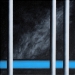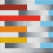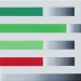 Geometric composition with green, red, white and grey. The borders of the work are also painted.